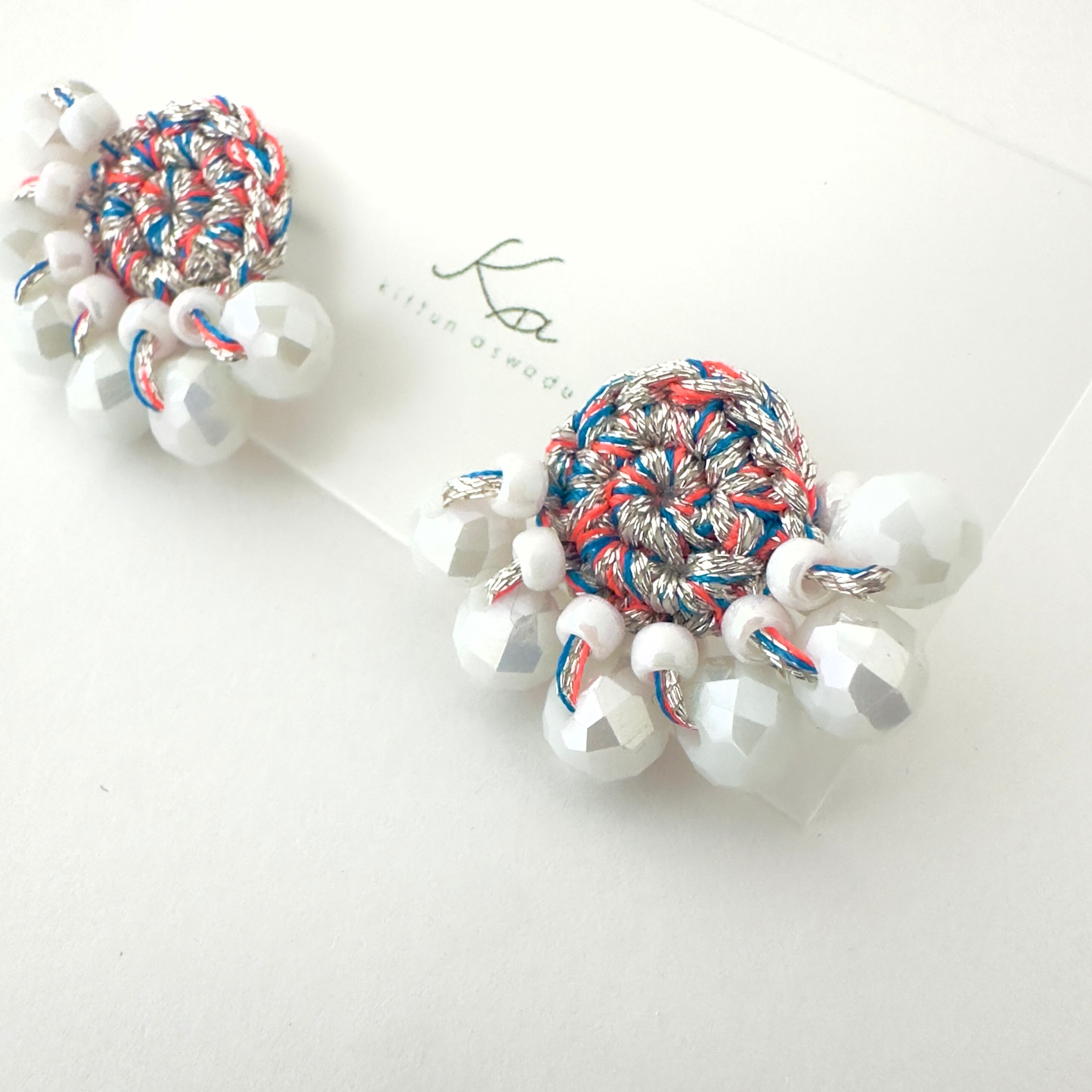 ビーズクロッシェピアス&イヤリングohana half ホワイト×オレンジ×ブルー(2025SS )