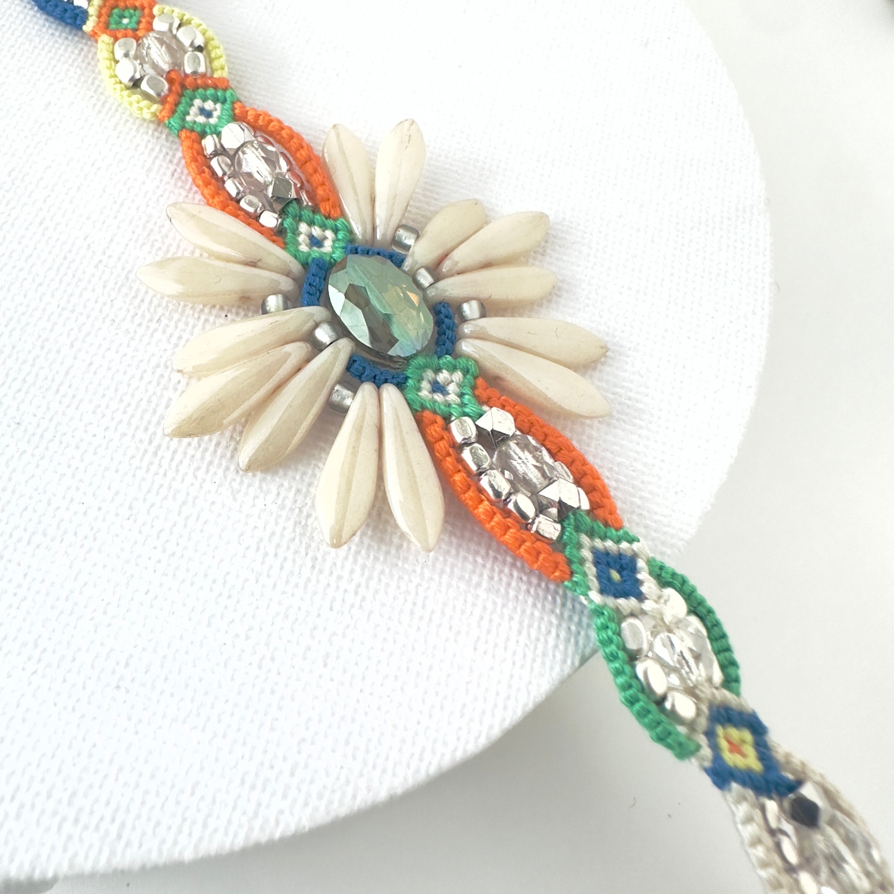ミサンガブレスレット (ホワイト×オレンジ×ブルー ) チェコビーズ ダガー