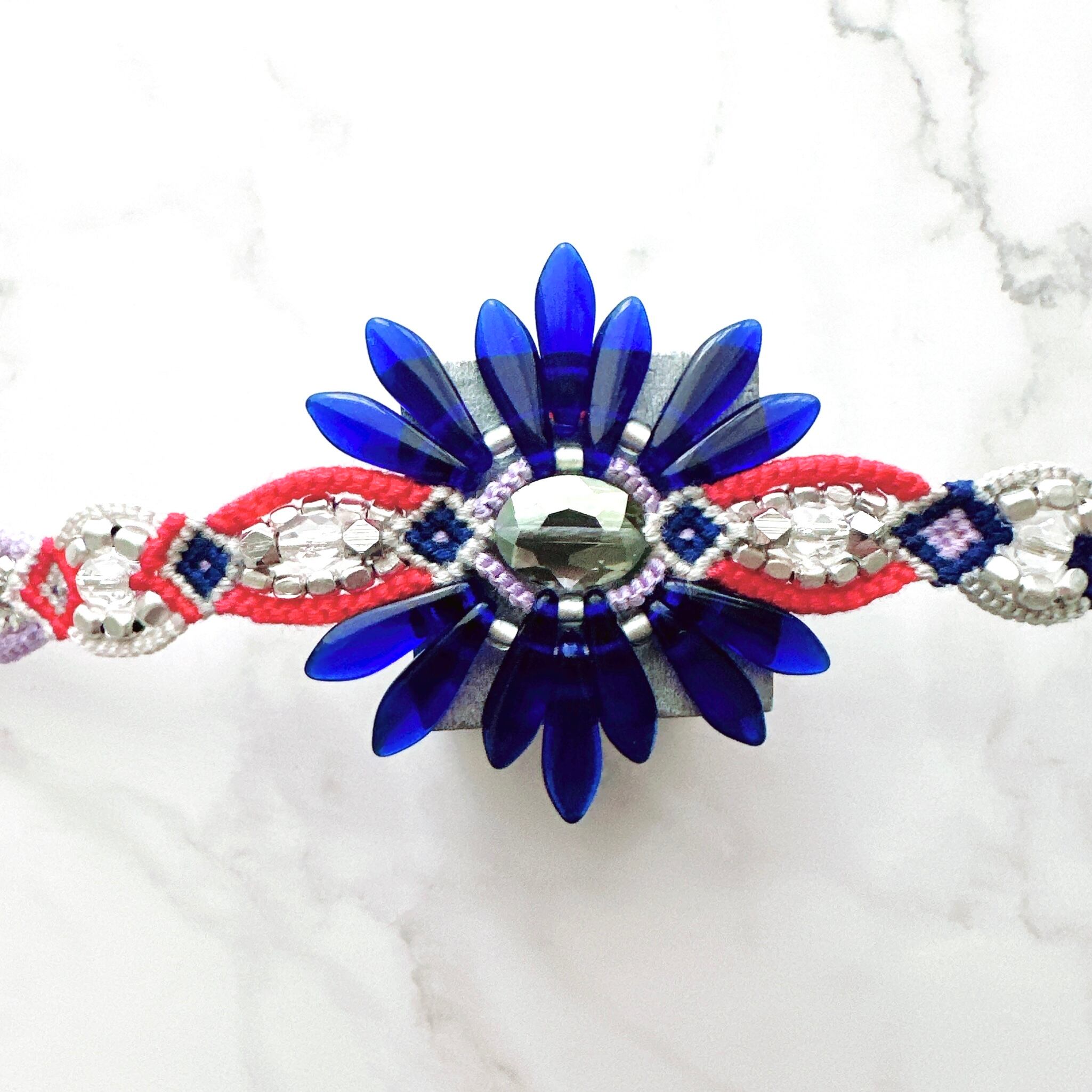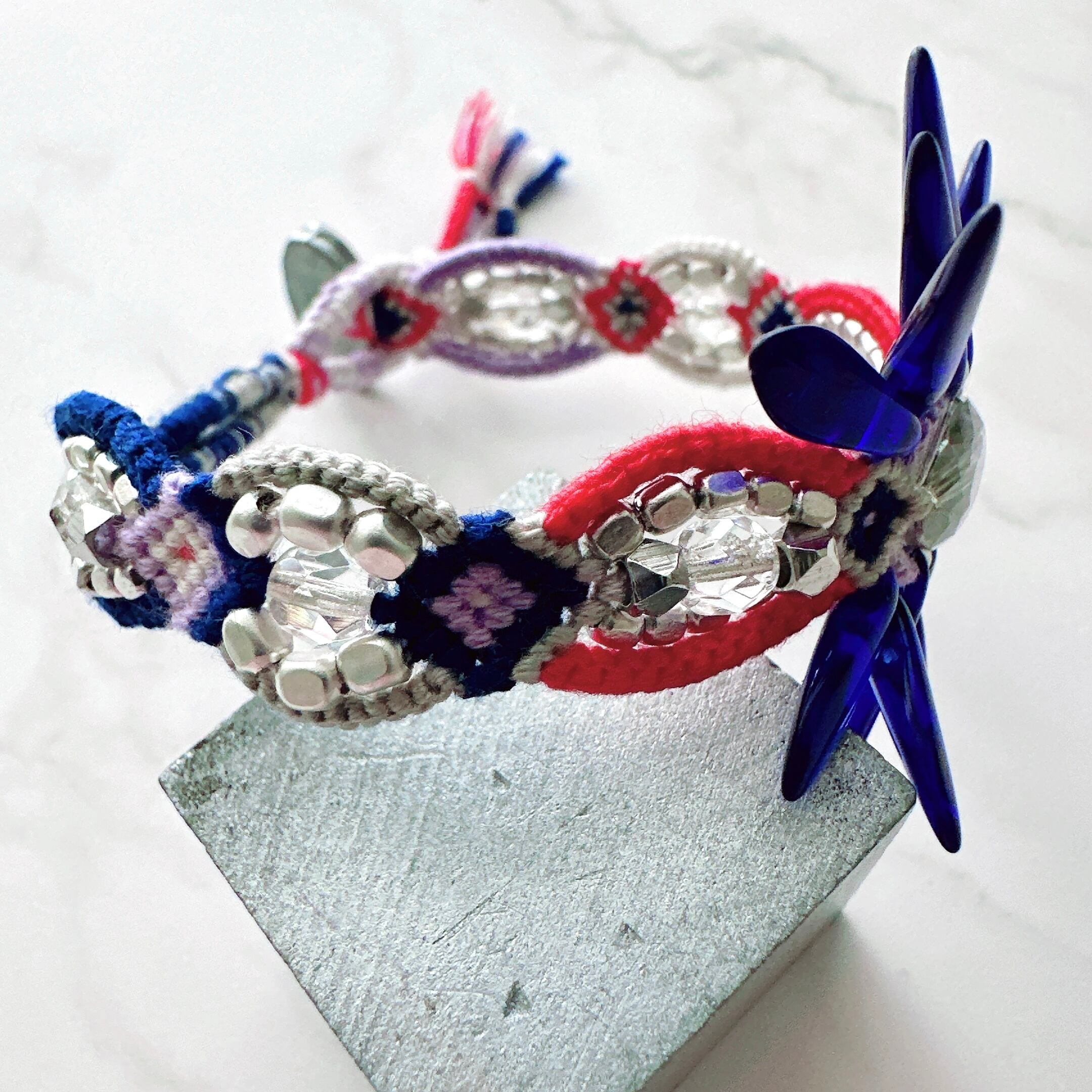 ミサンガブレスレット (ブルー×レッド×ホワイト ) チェコビーズ ダガー